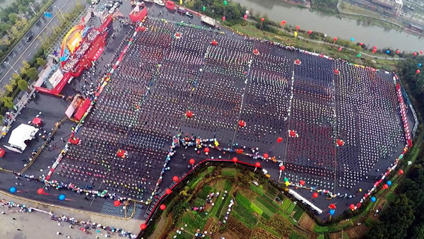 11月8日上午9时,浙江杭州虽然天空下着雨,却丝毫阻挡不了挑战者们的热情。此次挑战活动共19个会场近3万人冒雨一起跳排舞,共同创造了新的排舞吉尼斯世界纪录。我公司与学校老师共同组成的30人团体也在其中,虽然现场温度只有10度左右,但是最终通过大家的努力,“最大规模排舞”的吉尼斯世界纪录被刷新,一举超越了之前由美国的亚特兰大保持的17000人纪录。奥运冠军杨威、江钰源,世界冠军何宁等明星作为这场排舞吉尼斯挑战赛的形象代言人来到了现场。